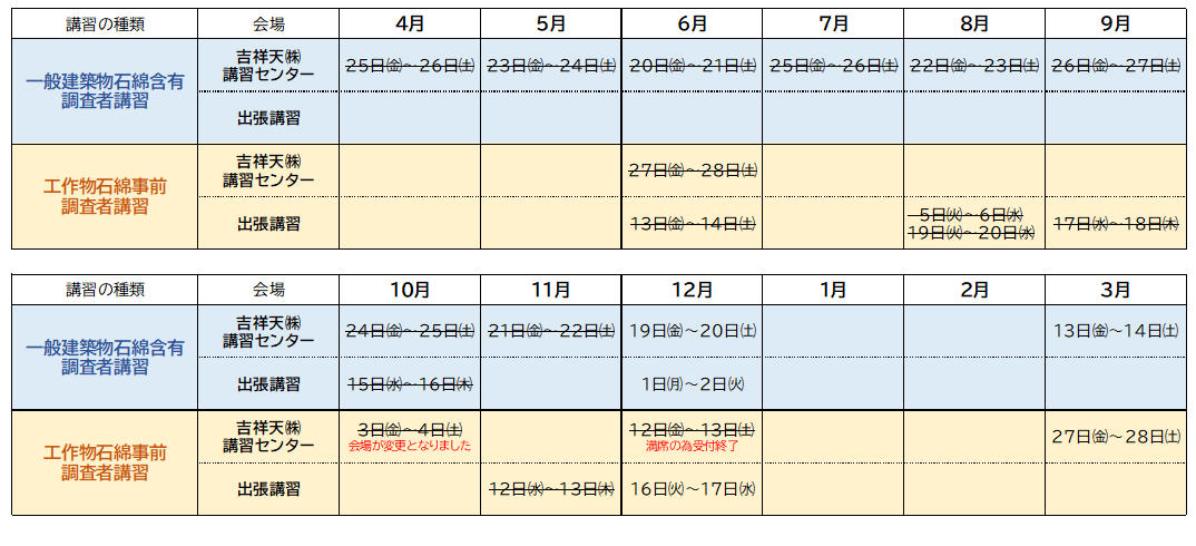 当機関では「石綿作業主任者技能講習」は行っておりません。