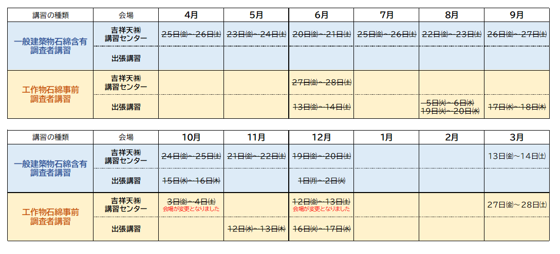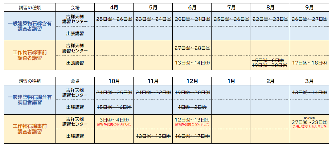 当機関では「石綿作業主任者技能講習」は行っておりません。